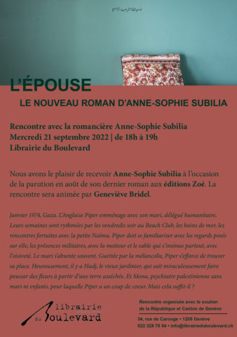 de la parution en août de son dernier roman « L’épouse » aux éditions Zoé.